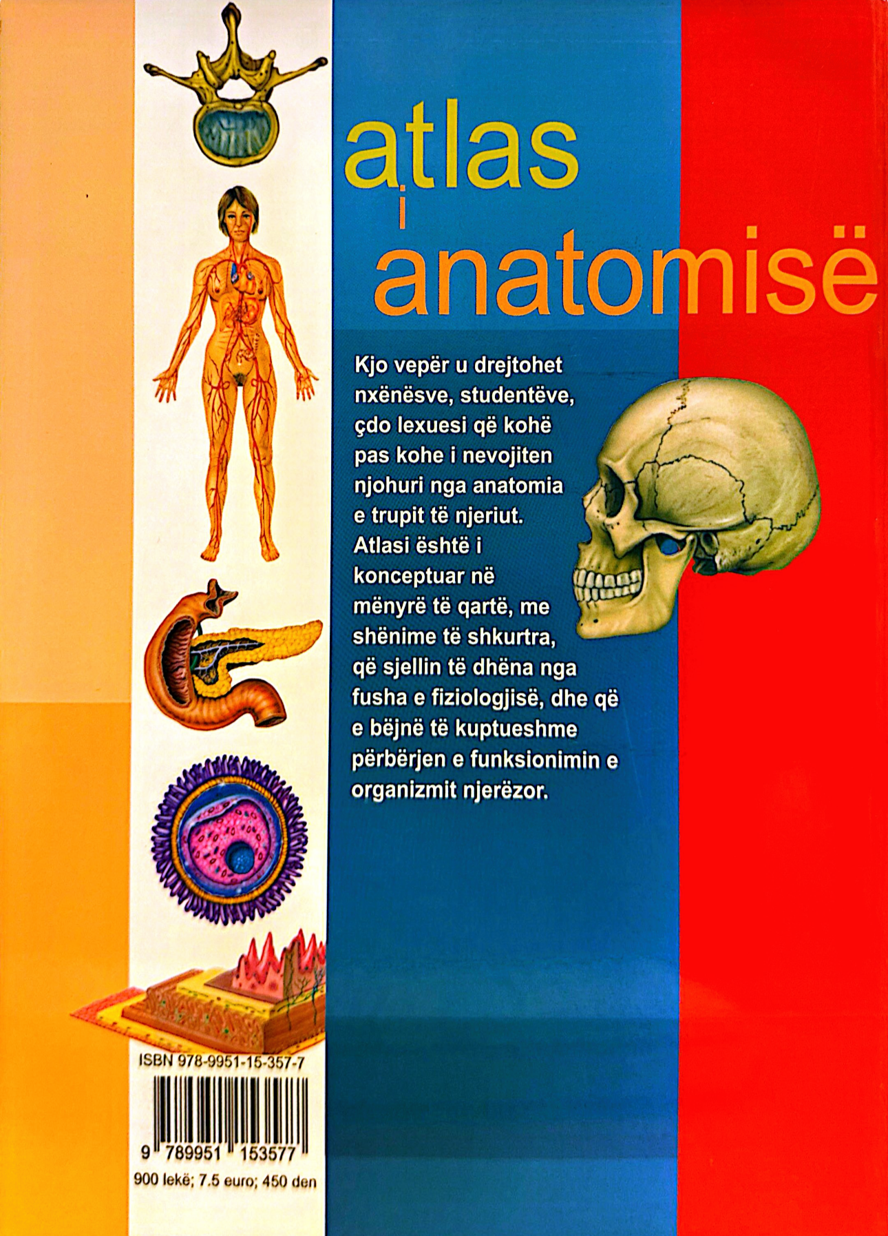 Ky atlas paraqet në mënyrë të qartë dhe të strukturuar anatominë e njeriut, duke u mbështetur në ilustrime të detajuara dhe terma anatomikë të standardizuar në gjuhën shqipe. Përmbajtja është e organizuar sipas sistemeve dhe aparateve kryesore të trupit, duke e bërë materialin të lehtë për t’u kuptuar dhe për t’u përdorur gjatë studimit dhe përsëritjes.