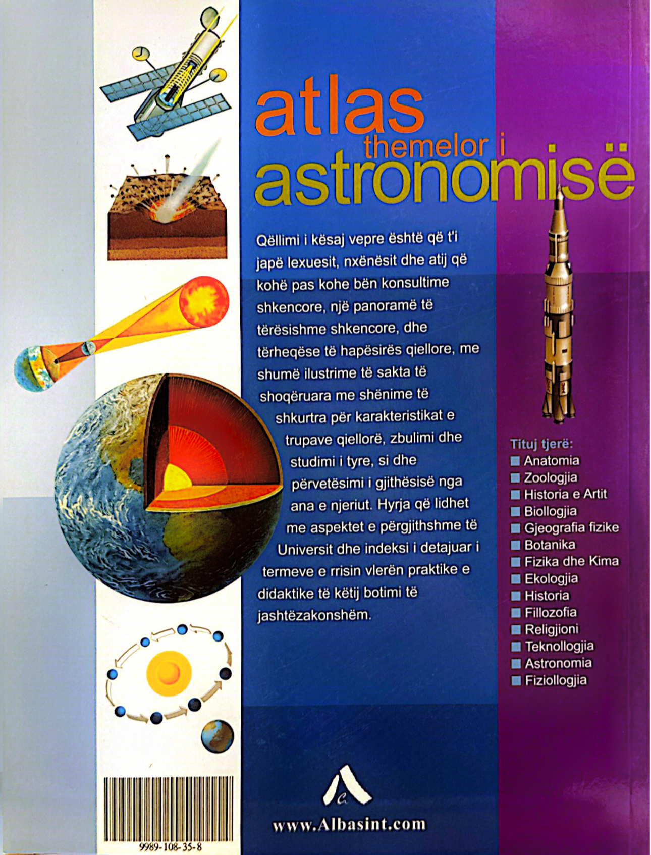 Ky atlas paraqet në mënyrë të qartë dhe të strukturuar njohuritë bazë të astronomisë, duke u mbështetur në ilustrime, harta të qiellit, skema dhe përshkrime shpjeguese. Përmbajtja trajton sistemin diellor, planetët, yjet, galaktikat dhe dukuritë kryesore astronomike, duke ndihmuar në kuptimin e universit dhe strukturës së tij.