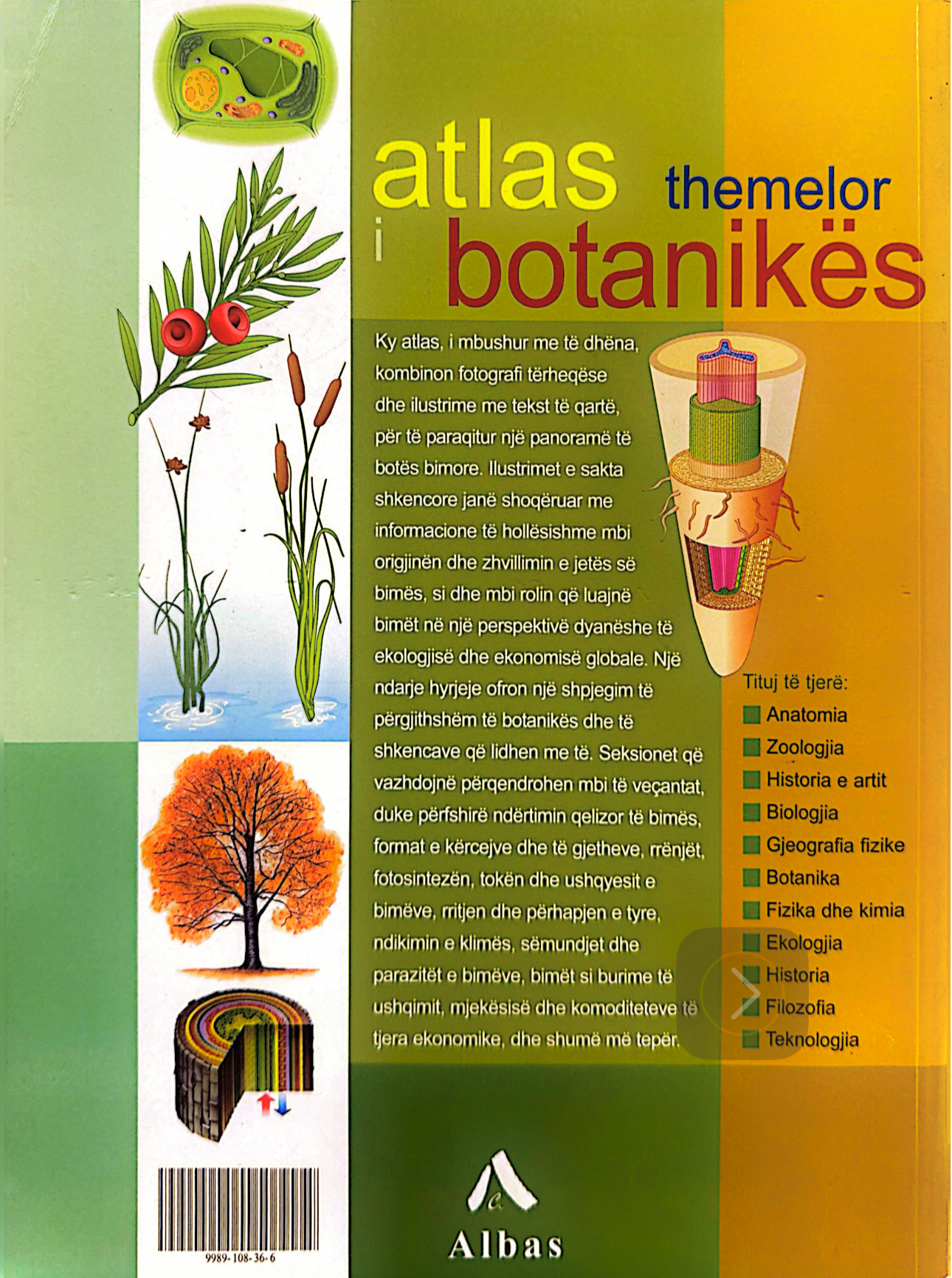 Ky atlas paraqet në mënyrë të qartë dhe të strukturuar njohuritë bazë të botanikës, duke u mbështetur në ilustrime të detajuara, skema shpjeguese dhe terma shkencorë të standardizuar. Përmbajtja trajton ndërtimin e bimëve, funksionet e pjesëve të tyre, proceset jetësore dhe klasifikimin bazë të botës bimore.