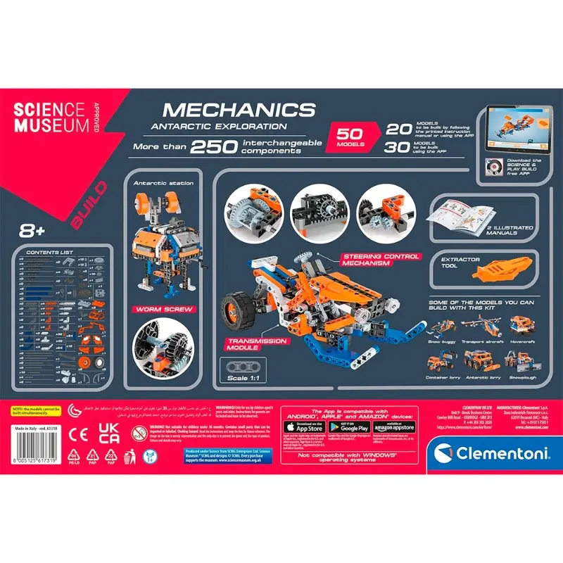 Me 350 përbërës, fëmija mund të ndërtojë 20 modele mjetesh për eksplorimin e Antarktidës, duke përfshirë kamionin, pastruesin e dëborës, traktorin, aeropllanin me jastëk ajri dhe shumë të tjera.